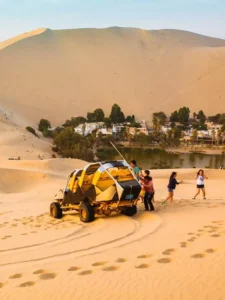 Paseo por este oasis natural único, con actividades de aventura como el paseo en tubulares por las dunas y la práctica de sandboarding, además de disfrutar las vistas panorámicas del desierto, especialmente al atardecer.